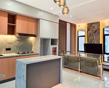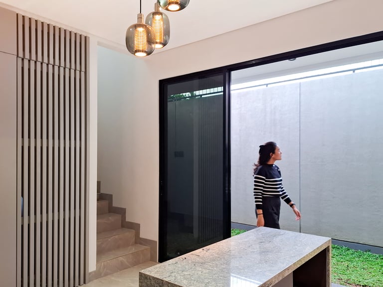 This project is built on an 8 x 15-meter plot. We dedicated ourselves to fulfilling our client's desire for a home that presents a simple exterior while revealing an interior design that truly reflects the owner's character.