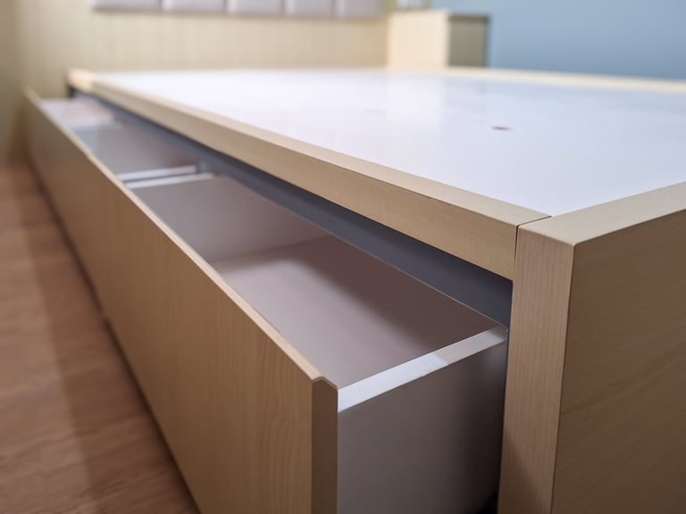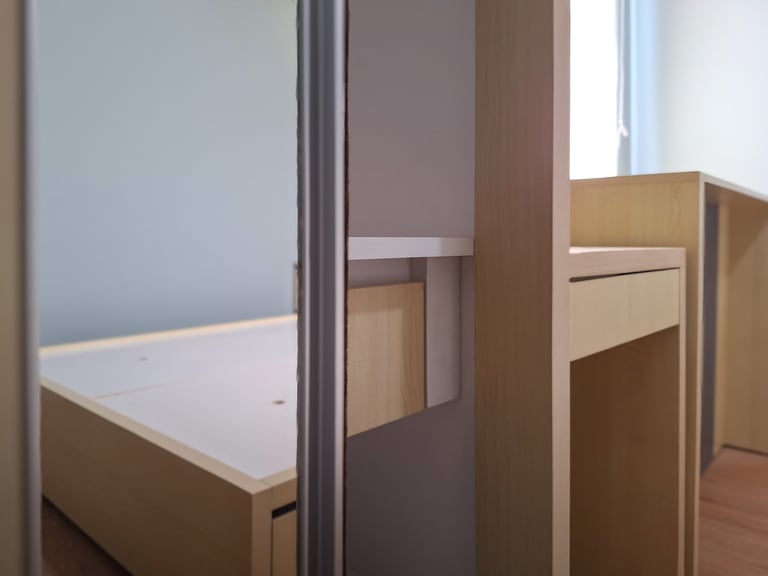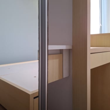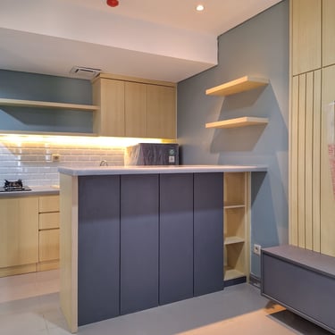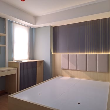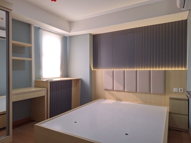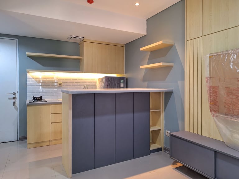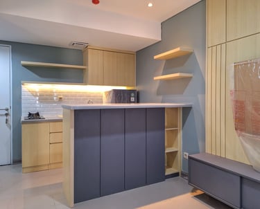One of our interior renovation projects in Depok is a one-bedroom apartment unit. This unit is prepared for flexible rental purposes, so its design prioritizes ease of maintenance for both furniture and other design elements.