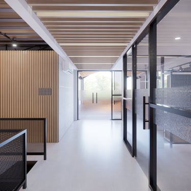 By focusing on a semi-industrial aesthetic, we repurposed a former warehouse into a contemporary office space. The juxtaposition of exposed concrete and warm wooden elements creates a visually striking and balanced atmosphere.