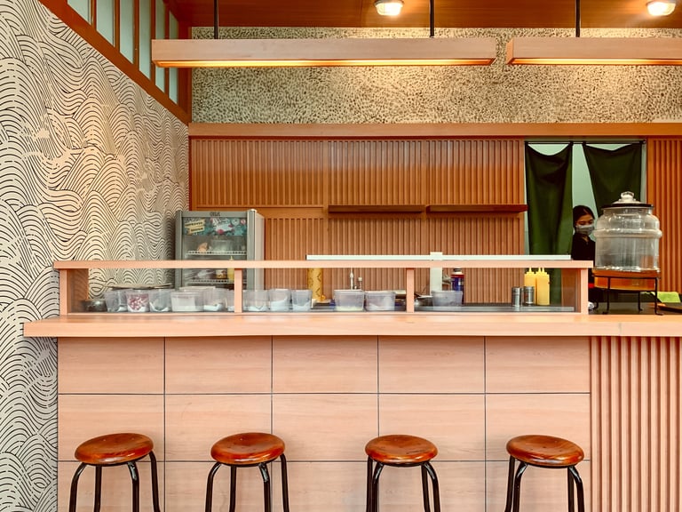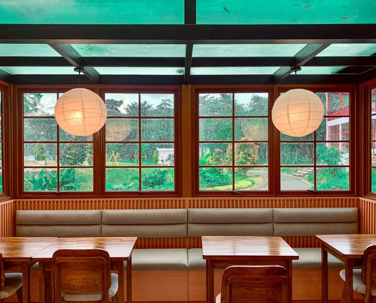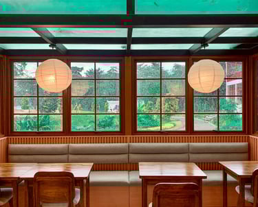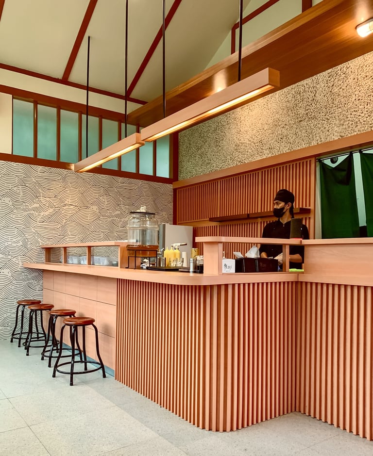 The architectural aesthetic of Japan is characterized by a building's visual appearance that integrates modern and innovative elements, such as the presence of a rooftop fish pond—which can potentially strengthen brand identity. The integration of wooden elements, both structurally and texturally, is an integral aspect in reinforcing the impression of a Japanese-style building. Typically, minimalist Japanese buildings utilize a spectrum of neutral colors, including white and brown.